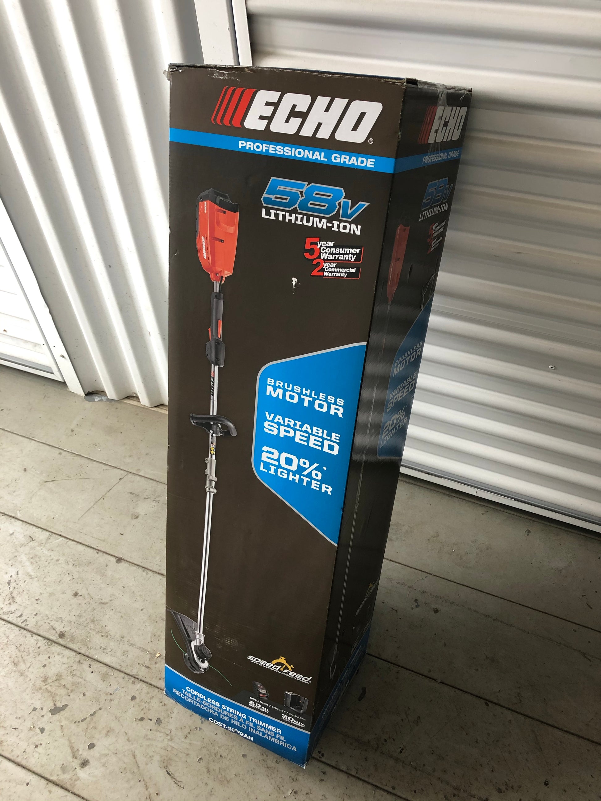 Echo 58-Volt Lithium-Ion Brushless Cordless String Trimmer - 2.0 Ah Battery and Charger Included Model: CDST-58V2AH. Brand new in sealed boxes